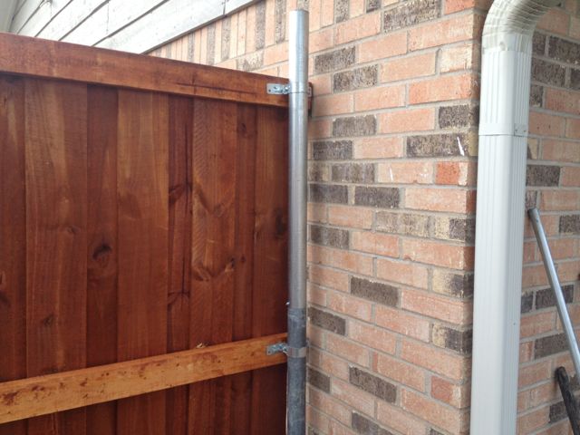 Theresa’s Mom’s fence has the distinction of being featured as the title image on our home page. Theresa and her mom were the first to choose our board-on-board Brazilian Brite Pine 6ft tall pre-fab panels with Mahogany stain.